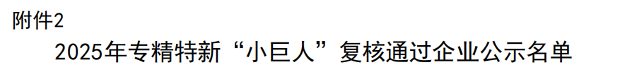 3、2025 年,面对更高标准的复审要求,公司以稳定的研发投入、领先的技术成果及显著的行业贡献顺利通过考核,持续保有国家级 “小巨人” 企业资质。